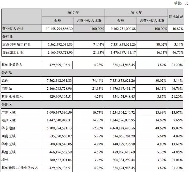 4月23日,圣農(nóng)發(fā)展發(fā)布2017年年報(bào),2017年公司營業(yè)收入101.59億元,同比增長10.87%;歸屬于上市公司股東的凈利潤3.15億元,同比下降58.69%。