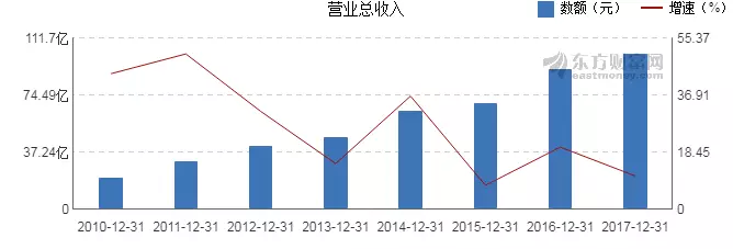 近8年來,公司同期營業(yè)收入及增速情況如下圖: