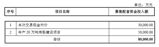 科迪乳業擬向不超過 10 名符合條件的特定投資者非公開發行股份募集配套資金,本次募集配套資金總額不超過8億元。擬用于支付本次交易現金對價和年產 20 萬噸烤腸建設項目。
