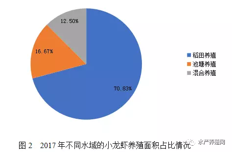 據不完全統計,2017年全國小龍蝦養殖面積達1200萬畝,較2016年增加300萬畝。按養殖水域分,2017年全國小龍蝦稻田養殖面積約為850萬畝,占總養殖面積的70.83%,池塘養殖面積約為200萬畝,占總養殖面積的16.67%,其他蝦蟹混養、大水面增殖、蓮(葦)田套養等混養面積約為150萬畝,占總養殖面積的12.50%。2017年全國小龍蝦稻田養殖面積約占全國稻田養魚面積2524萬畝的47.54%,較2016年增加了7.54個百分點。