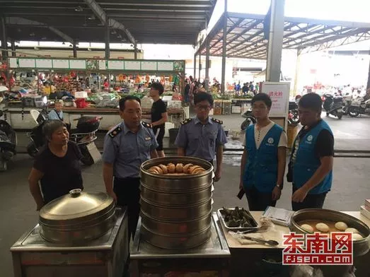 ▲泉州市市場監督管理局對市場攤點紅糖饅頭進行檢查