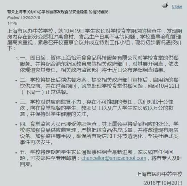 根據學校的通報情況,該食堂的供應商是上海怡樂食食品科技服務有限公司,由康帕斯(compass)百分百占股,已經為中芯國際學校服務四年。