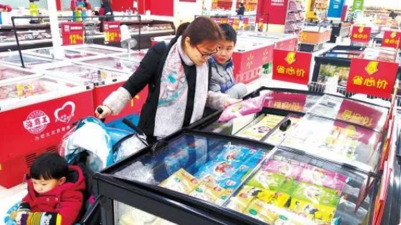 從消費量上來說,即使有部分產品出現了促銷的情況,也沒有吸引太多的顧客關注,速凍食品銷售區域內,顧客三三兩兩,不是很多。