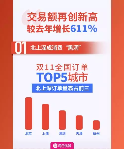 每日優鮮雙11:交易額同比增長611%,“新一線城市”表現搶眼