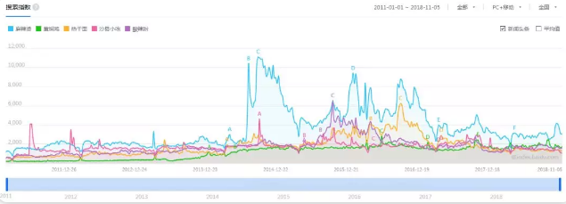 ▲百度指數(shù)顯示,麻辣燙的全網(wǎng)指數(shù)自2014年開(kāi)始大幅提高