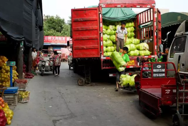 批發(fā)商一代憑實(shí)干贏得了天下,年輕的二代接過(guò)父輩的擔(dān)子登上舞臺(tái)。圖為水果蔬菜商戶在忙碌
