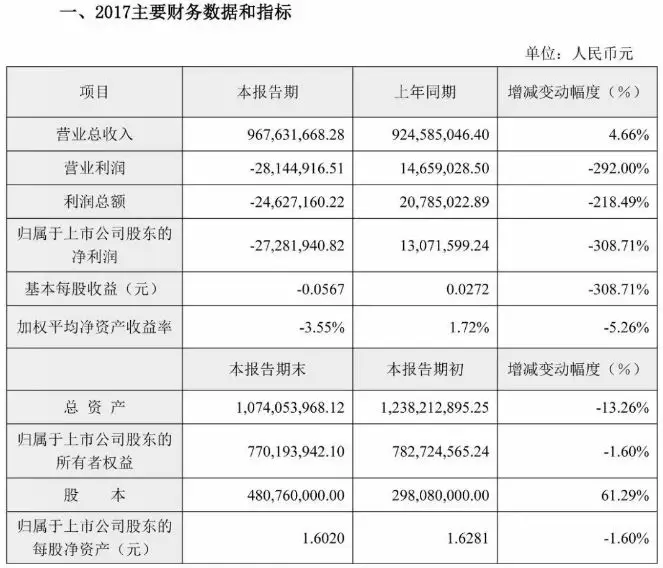 據快報中稱,凈利潤大幅下降的主要原因是2017年度終止限制性股票激勵計劃產生管理費用2090.70萬元,以及計提參股公司上海貓城電子商務股份有限公司長期股權投資減值準備1,229.37萬元。