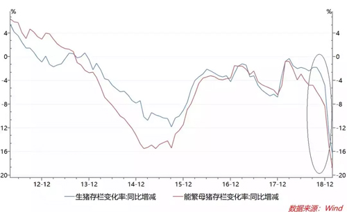 由于豬肉消費(fèi)量大且相對(duì)穩(wěn)定,豬價(jià)主要受生豬供給的變化影響。2018年三季度以來發(fā)生的相關(guān)疫情,導(dǎo)致生豬及能繁母豬存欄數(shù)量銳減。隨著供給大幅下滑,豬價(jià)上漲變得順理成章。