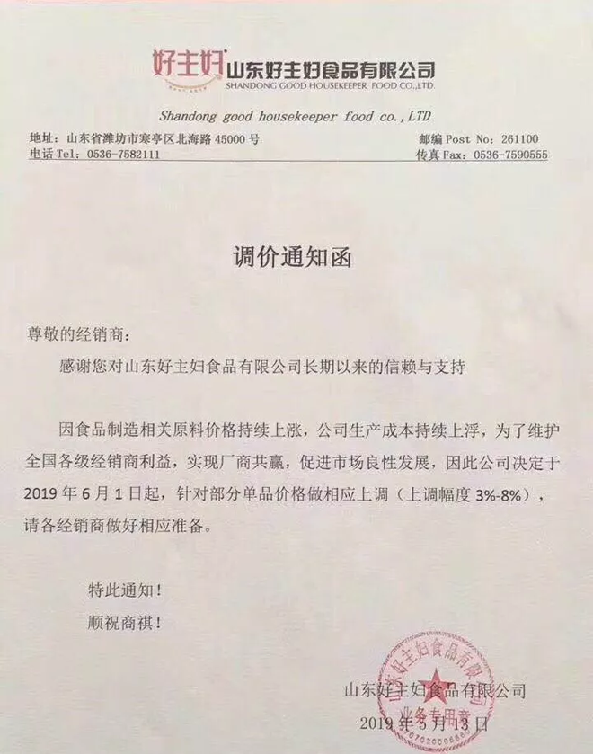 這兩天,有不少經銷商和廠家發布新一輪漲價通知,漲價產品主要是和豬肉、雞肉有關的制品。一起看看吧!