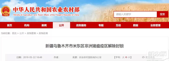 農業農村部5月22日接到新疆維吾爾自治區畜牧獸醫局報告,經評估驗收合格,新疆維吾爾自治區烏魯木齊市米東區非洲豬瘟疫區解除封鎖。