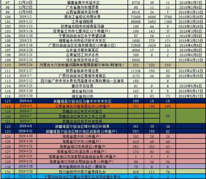 這是我國發生的第132起疫情(129起家豬疫情,3起野豬疫情),寧夏回族自治區自1月20日發生非洲豬瘟疫情后,再次發生疫情。