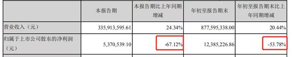 僅就第三季度看,公司營收3.36億元,同比增24.34%;歸屬于上市公司股東的凈利潤是537萬元,同比降67.12%。