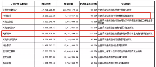 從上圖可知,海欣資產(chǎn)負(fù)債增幅最大的兩項(xiàng)是無形資產(chǎn)和預(yù)付款項(xiàng)。