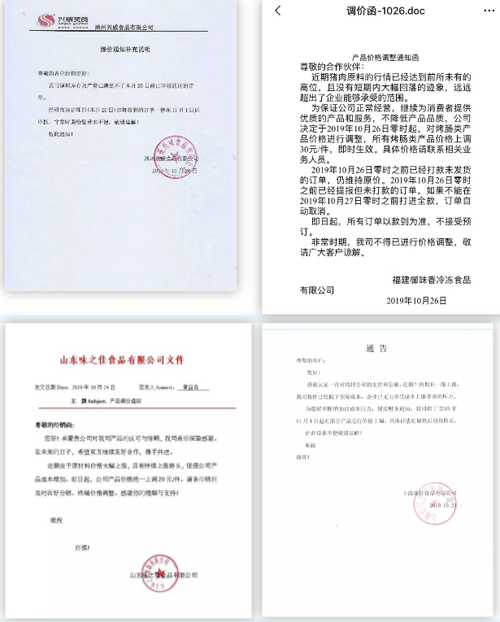 1、安井、海旺食品接連發布產品調價通知函