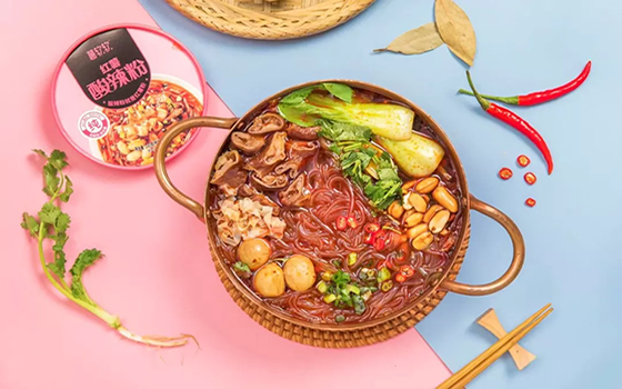 最近,他們還在研究酸辣粉。不同于現(xiàn)在市場(chǎng)上的常規(guī)產(chǎn)品,紅薯軟軟的酸辣粉選用洛陽(yáng)市洛寧縣河底鎮(zhèn)的優(yōu)質(zhì)紅薯粉,輔料、底料從幾十家供應(yīng)商中擇優(yōu)使用,做可以喝湯的酸辣粉,多次免費(fèi)送樣品鑒、反饋、改進(jìn)后才初步定型。整體包裝依然延續(xù)粉紅色,還加入了情緒宣傳語(yǔ),提升品牌附加值。