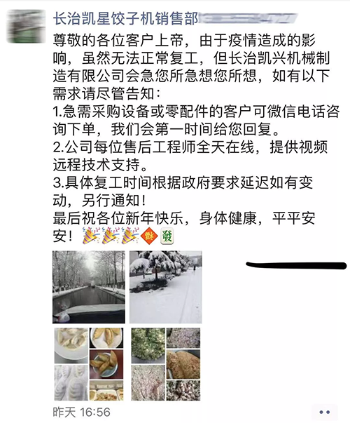 一些設備企業雖然暫時不能恢復生產,但開始了線上辦公,紛紛發圈表示:公司技術人員、售后人員提供視頻遠程技術支持,也是棒棒噠!