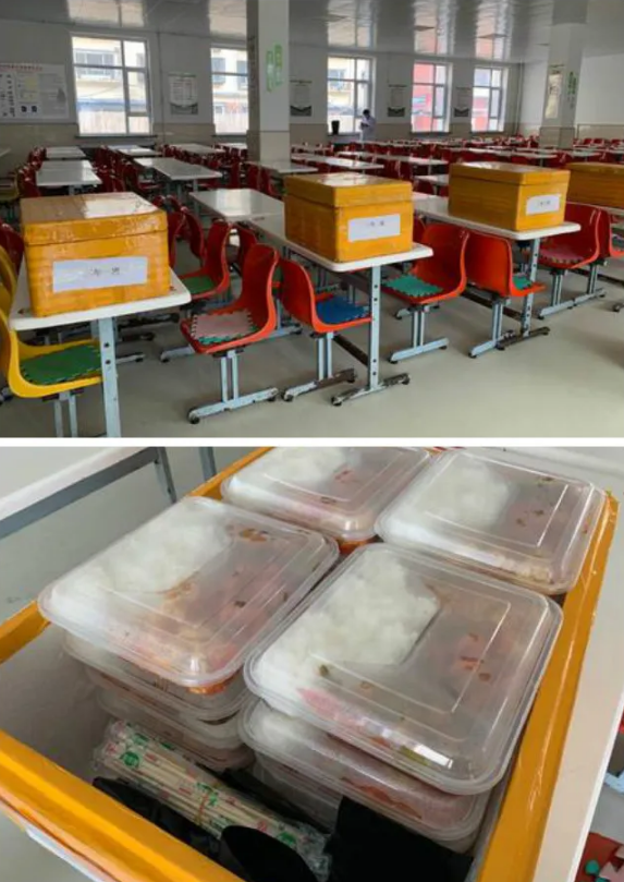 疫情期間,有的學校會安排學生們在教室分批就餐或分區就餐,這就需要由食堂工作人員將餐食配送至每位學生面前。