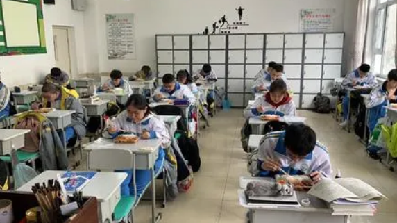 “為了滿足671名高三學生安全就餐的需求,學校采用分餐制,領完餐到班級就餐。”劉主任表示。