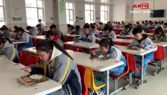 吉林二中周校長也表示,學校食堂雖然有三層餐廳,但是仍然不能滿足間隔一米的要求。最終學校決定分流、分區域就餐,每個班級按照輪流制安排部分學生去食堂就餐,由老師帶領按照編號到食堂指定區域就餐;部分學生在教室用餐。