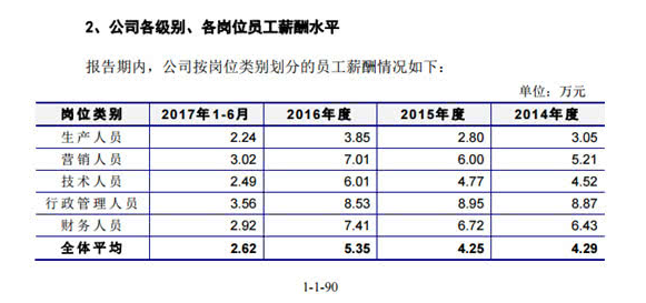 一線生產(chǎn)工人減少了,但工人的工資卻并沒(méi)有大幅上漲。2015年生產(chǎn)人員年薪僅2.8萬(wàn)元,折合月薪僅2300元;2016年為3.85萬(wàn)元。而官方數(shù)據(jù)統(tǒng)計(jì),2015-2017年,重慶市在崗職工平均月工資分別為5175元、5616元和6106元。也就是說(shuō),有友食品一線生產(chǎn)員工工資僅為重慶市在崗職工平均工資的一半。