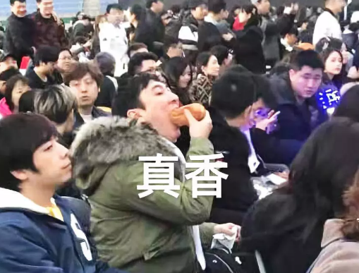 ▲國民老公風靡全網的吃熱狗現場。不過這是面包加腸