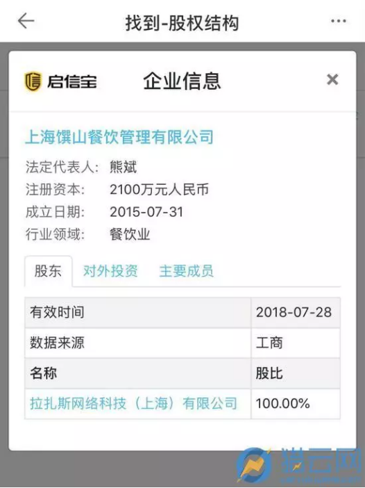 (上海饌山為餓了么旗下100%控股企業)