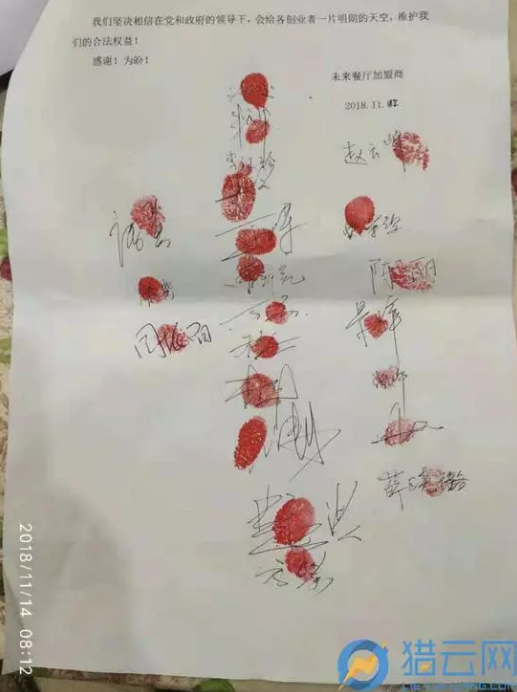 (餓了么未來餐廳加盟商家們在求助信中的按壓手印)